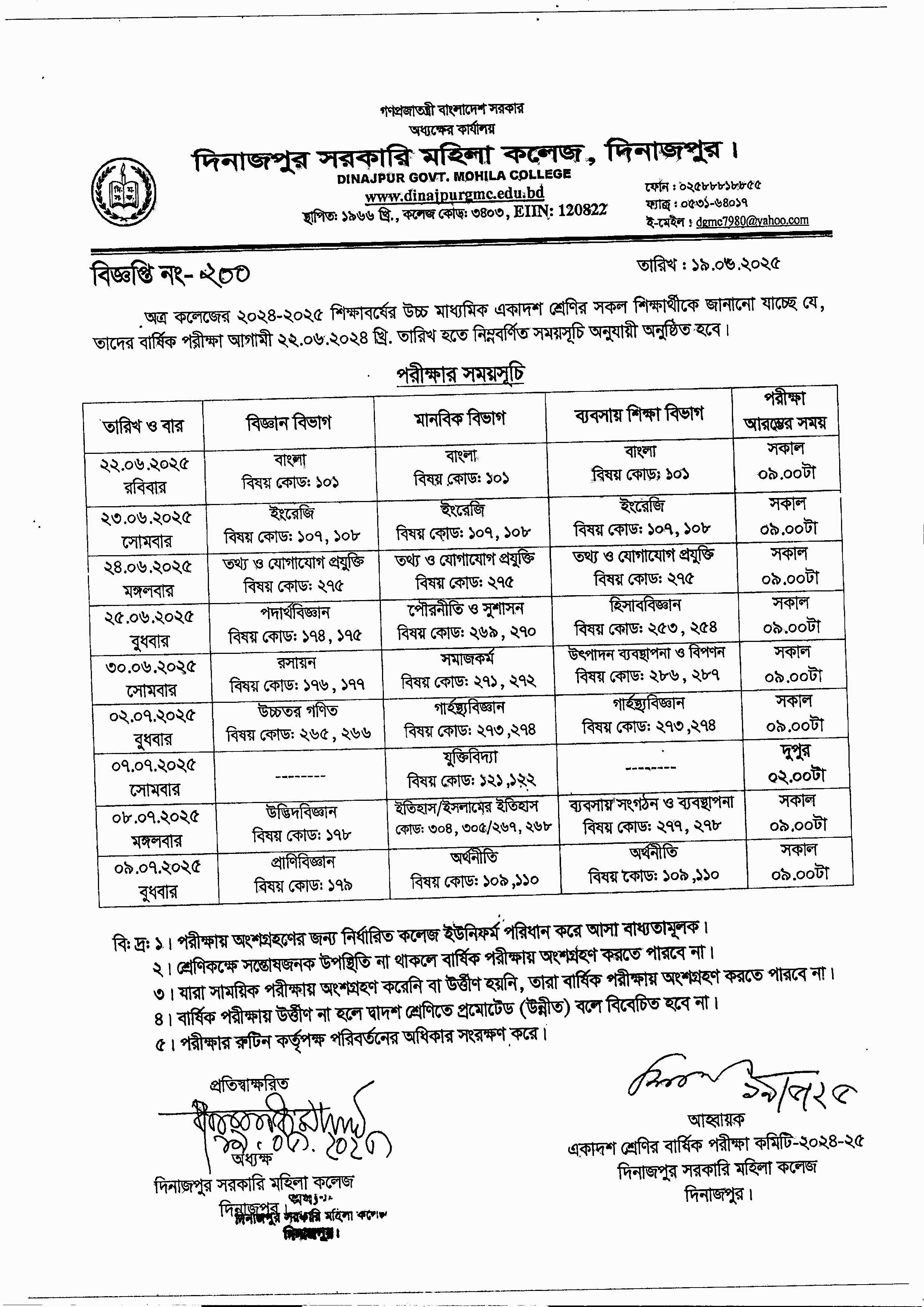 ২০২৪-২০২৫ শিক্ষাবর্ষের উচ্চ মাধ্যমিক একাদশ শ্রেণির বার্ষিক পরীক্ষার সময়সূচি