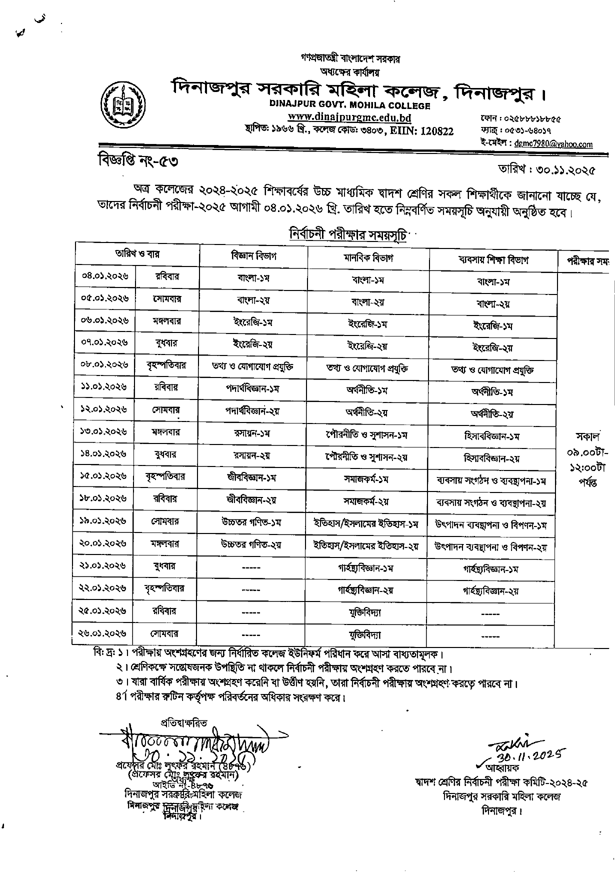 ২০২৪-২৫ শিক্ষাবর্ষের দ্বাদশ শ্রেণির নির্বাচনী পরীক্ষা-২০২৫ এর সময়সূচি