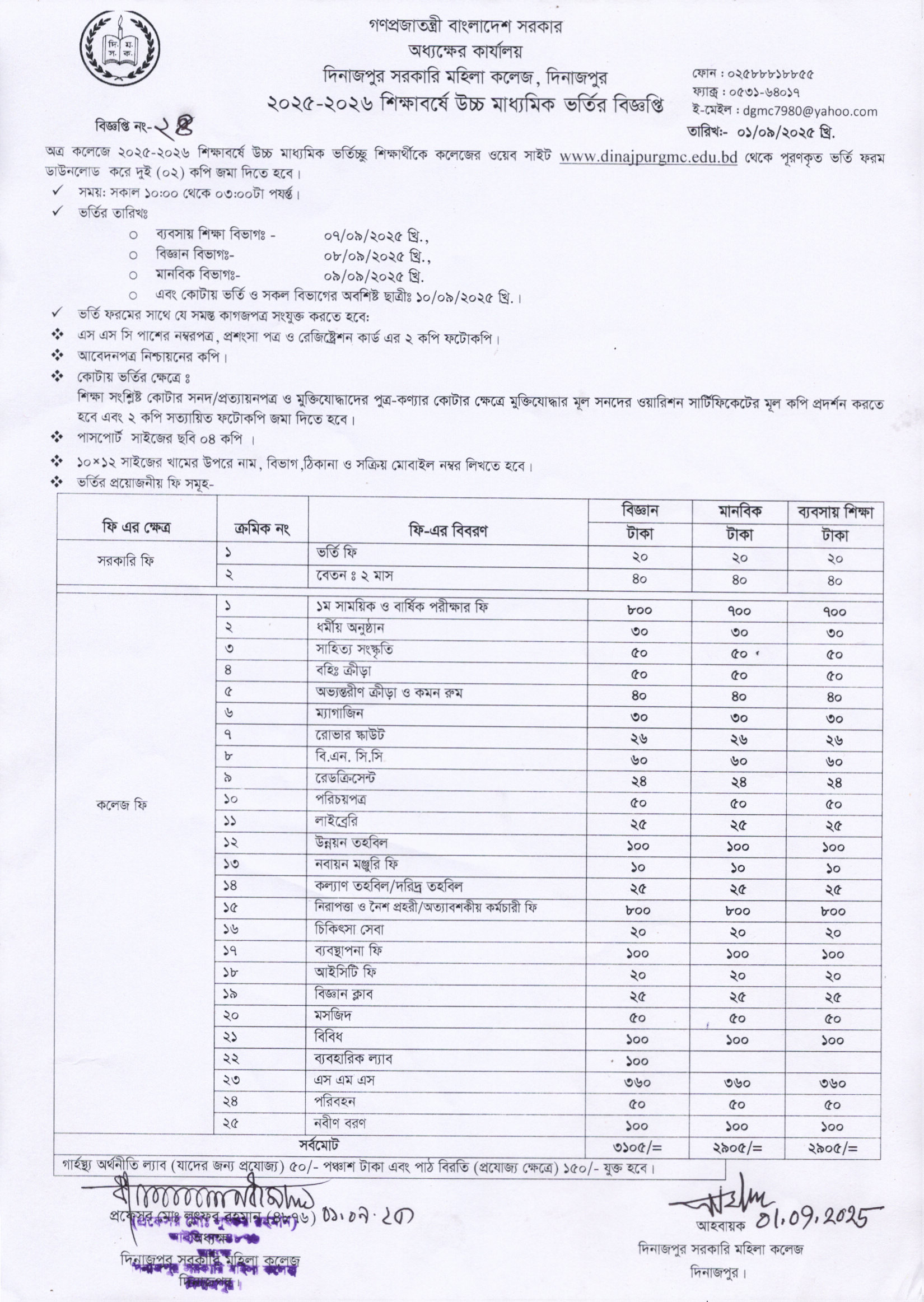 ২০২৫-২০২৬ শিক্ষাবর্ষে উচ্চ মাধ্যমিক ভর্তি বিজ্ঞপ্তি