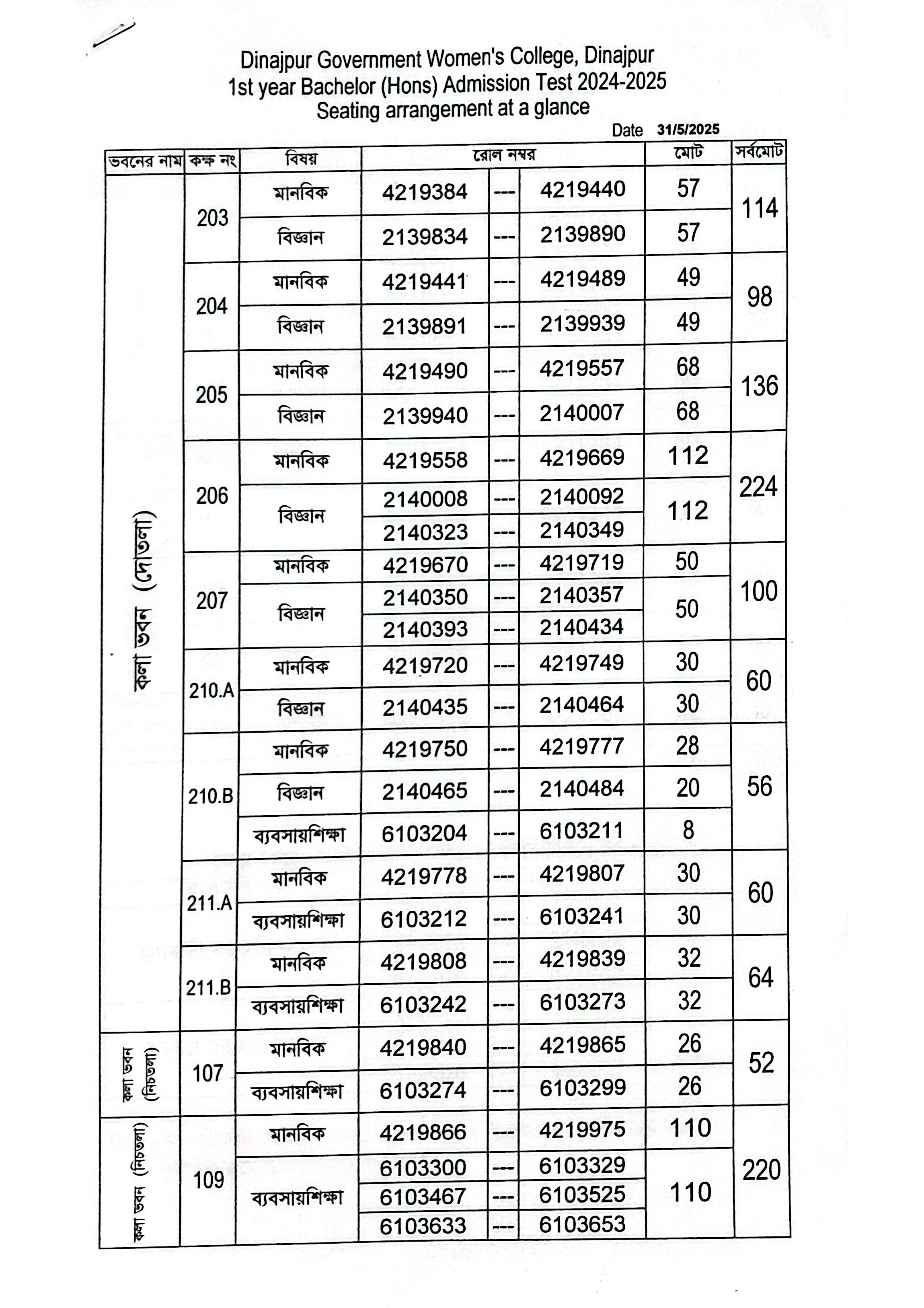 অনার্স ১ম বর্ষ ভর্তি পরীক্ষা ২০২৪-২০২৫ এর আসন বিন্যাস (copy)