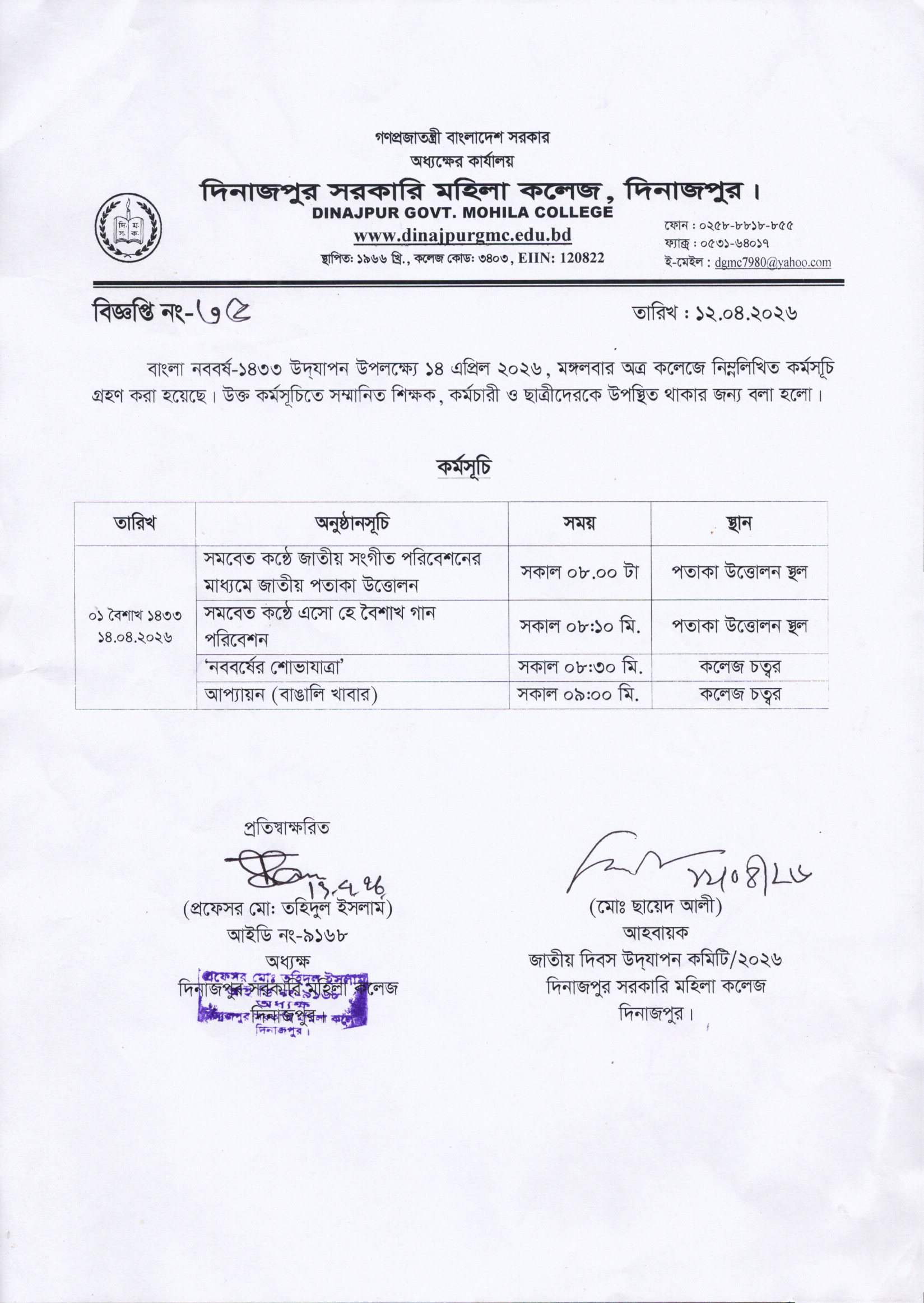 বাংলা নববর্ষ ১৪৩৩ উদ্যাপন উপলক্ষ্যে বিভিন্ন কর্মসূচি