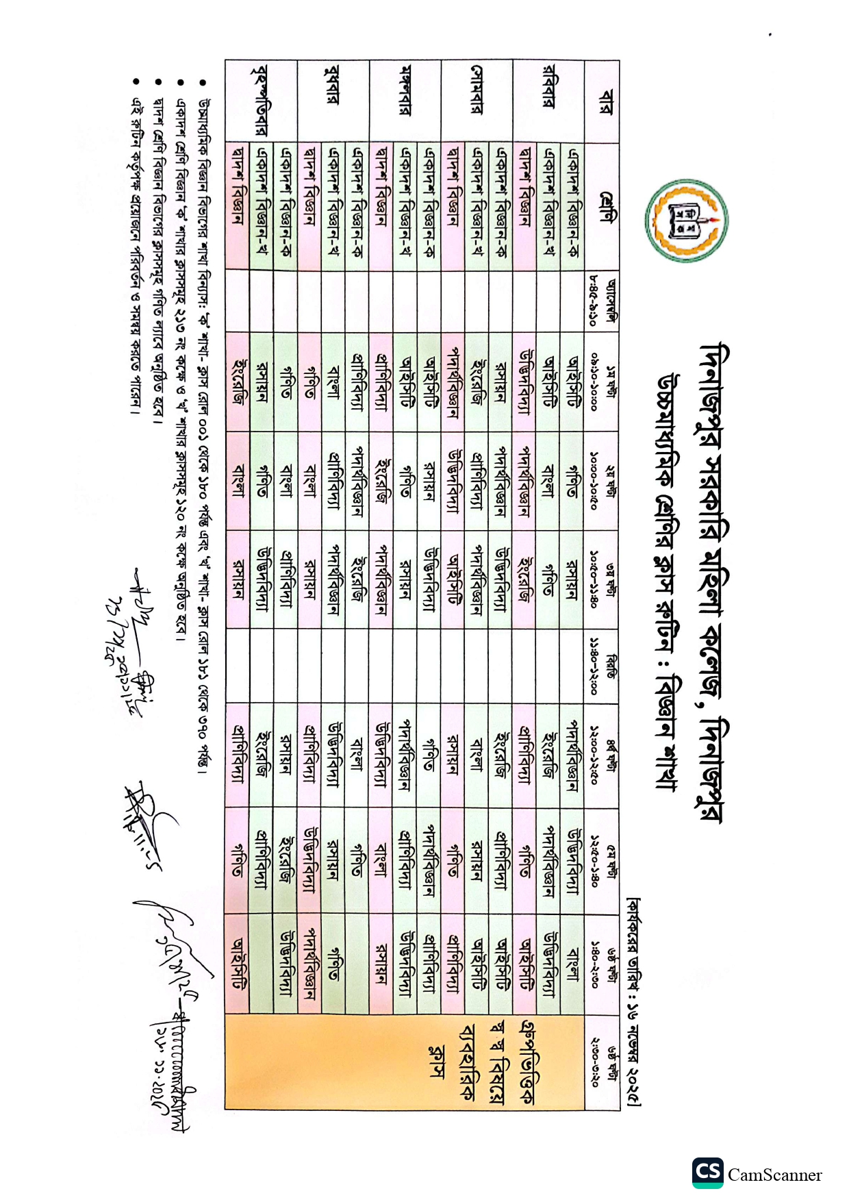 উচ্চমাধ্যমিক শ্রেণির ক্লাস রুটিনঃ বিজ্ঞান শাখা